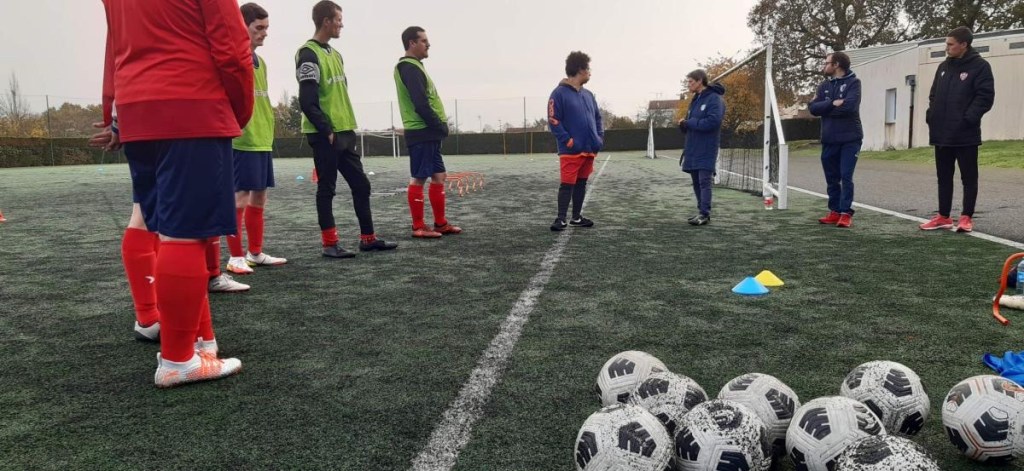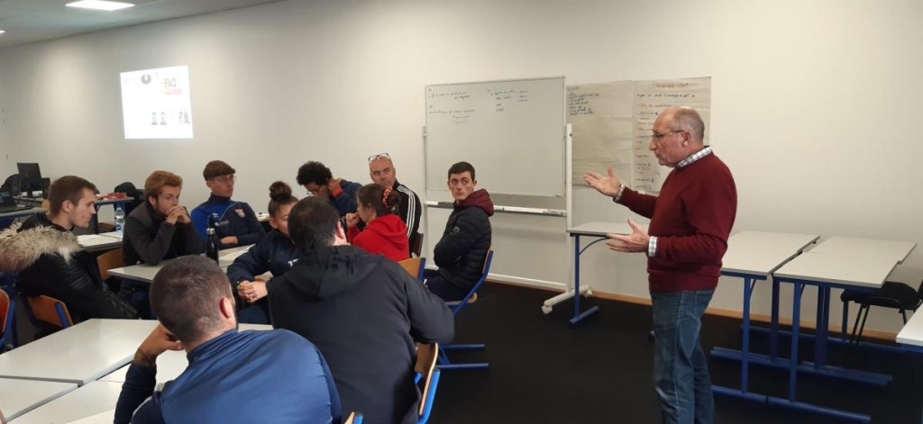 JournĂ©e de formation pour Pauline et Wilfried au LycĂ©e Notre Dame du Roc, Ă la Roche sur Yon, pour le module handicap proposĂ© par le District de VendĂ©e et animĂ© par Adrien Remaud et Magali Stevant, avec les interventions du prĂ©sident de la commission Sport Handicap du District et d’Adrien Praud, du ComitĂ© de VendĂ©e de la FĂ©dĂ©ration Française du Sport AdaptĂ©.