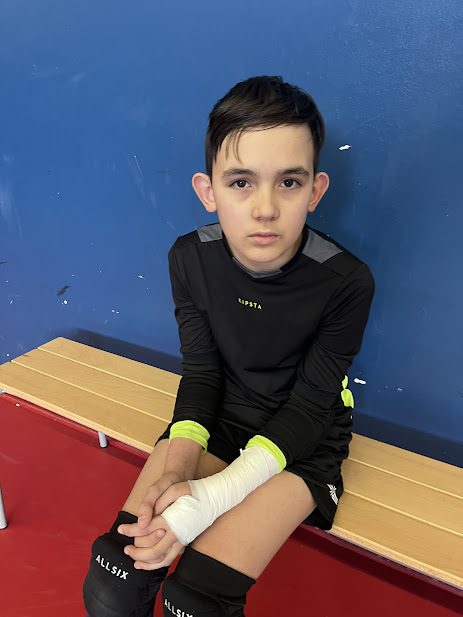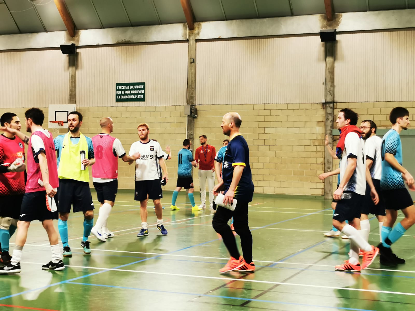 S’ils étaient 8 au départ, les jeunes bleus jouaient finalement la quasi intégralité du match à 7, Mathias, le gardien, ne pouvait tenir son poste en raison d’une blessure au poignet trop douloureuse dès l’échauffement.